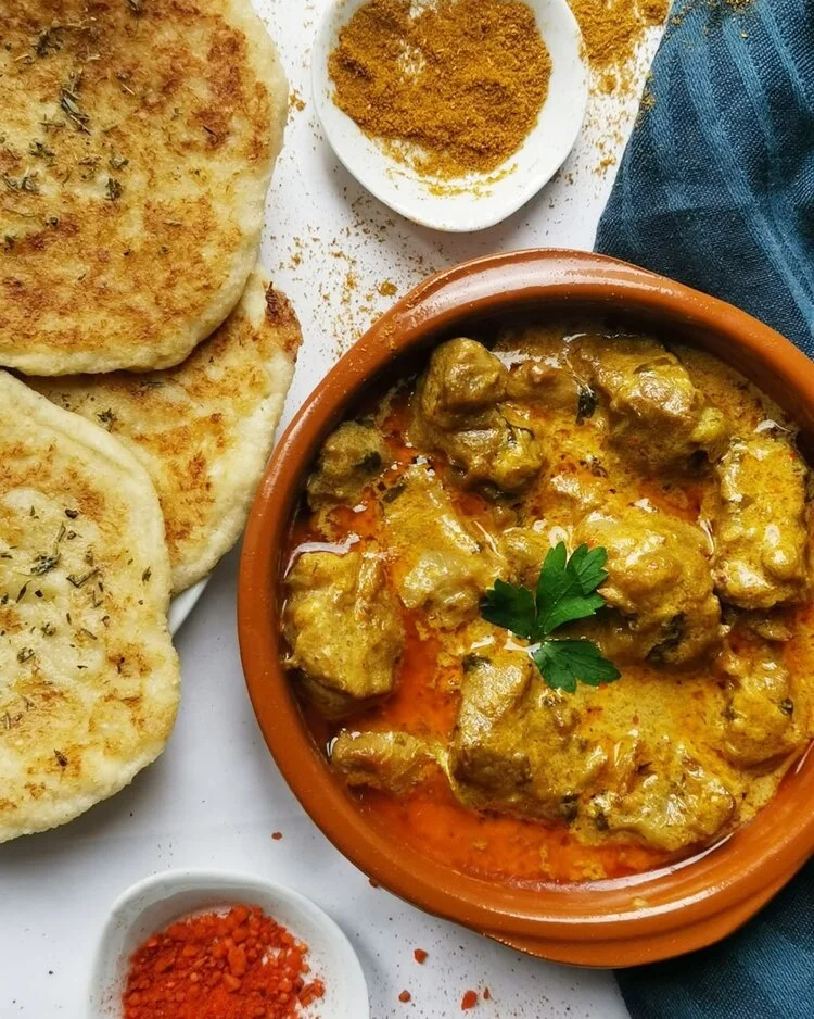 Curry d'agneau et Naan bread