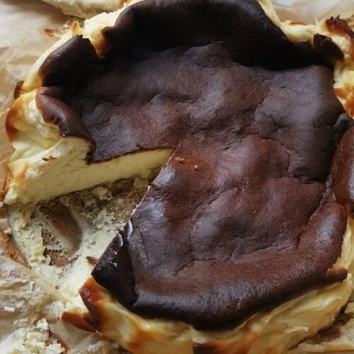 Entre temps préparé 2 feuilles de papier sulfurisé pour recouvrir l'intérieur d’un moule rond de 20cm de diamètres. Les bords de la feuille doivent dépasser d’au moins 7 centimètres du moule car la tarte au fromage va fort gonfler pendant la cuisson pour par la suite retomber.