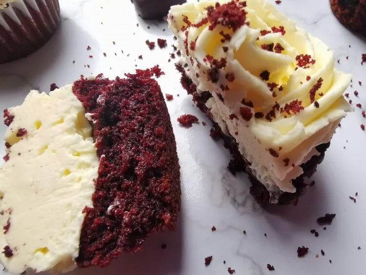 Dans le cas où vous n’en avez pas un aussi grand, vous pouvez le faire en 2 fois. Placez les moules à cupcakes/muffins dans le milieu du four et laissez cuire pendant 20 minutes.